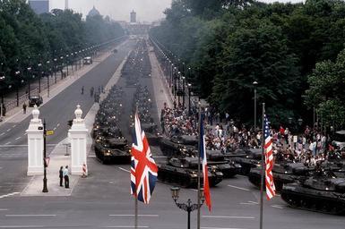Keywords: Parade de l'armée française à Berlin.JPEG en A French armored unit drives its AMX-30 main battle tanks out of the staging area at the start of the annual Allied Forces Day parade fr Une unité d'AMX-30 du 11e régiment de chasseurs des forces française à Berlin au départ de la parade de la journée des forces alliés à Berlin-Ouest le 11 juin 1988 2013-04-13 11 34 30 http //www defenseimagery mil/imagery html a search s AMX-30 t 0 guid aac8ce6bba44cff9f92a1880009f1ecbe7889281 author PD-USGov Uploaded with UploadWizard AMX-30 tanks Forces Françaises à Berlin Straße des 17 Juni Berlin-Tiergarten |