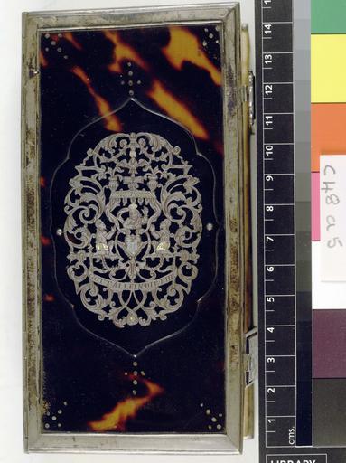 | Keywords: Paradiessgartlein, voller Christlichen Tugenden. - Lower cover (c48a5).jpg Style Centrepiece; Caption Lower cover; Colour Brown; Edge Unspecified exhibition history Decorative Technique Unspecified; Cover Material Tortoise shell Tortoiseshell binding silver border engraved silver centrepieces with mother of pearl tortoiseshell and silver clasps hinges on the lower cover Engraved letters GOTT ALLEIN DIE EHR object history Text 1722; Ulm; Unspecified object type Cc-zero place of creation Binding Germany place of discovery Unspecified British Library image http //www bl uk/catalogues/bookbindings/LargeImage aspx RecordId 020-000008538 ImageId ImageId 43874 Copyright BL Paradiessgartlein voller Christlichen Tugenden Uploaded with GWToolset Paradiessgartlein voller Christlichen Tugenden - Lower cover c48a5 http //www webarchive org uk/bldatasets/bindings/9165_4 jpg Bookbinding 18th-century bookbinding British Library Bookbindings |