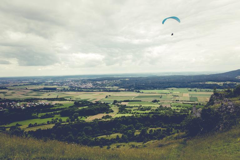 Keywords: paragliding fly float sky paraglider freedom summer sport flight kite airy clouds parasailing dragon fly parachute cloudiness glide walberla franconian switzerland ehrenbürg upper franconia swiss francs