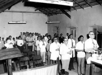 Keywords: india mennonite board of missions mennoniteboardofmissions miraj paramedical graduates paramedicalgraduates graduation graduate graduates richardson leprosy mission richardsonleprosymission missionary procession blackandwhite monochrome indoor black and white Caption: Paramedical graduates at Richardson Leprosy Mission, Miraj, India, join t o sing, "Lord, Light the Candle of My Heart". Missionary John Friesen, traveling secretary for North India, was invited to lead the procession. Citation: Mennonite Board of Missions Photographs, 1898-1967. IV-10-007.2 Box 4 Folder 17. Mennonite Church USA Archives - Goshen. Goshen, Indiana. Caption: Paramedical graduates at Richardson Leprosy Mission, Miraj, India, join t o sing, "Lord, Light the Candle of My Heart". Missionary John Friesen, traveling secretary for North India, was invited to lead the procession. Citation: Mennonite Board of Missions Photographs, 1898-1967. IV-10-007.2 Box 4 Folder 17. Mennonite Church USA Archives - Goshen. Goshen, Indiana. |