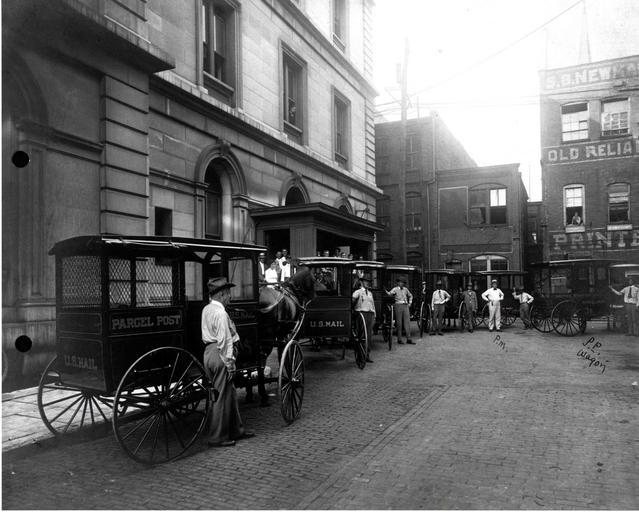 Keywords: smithsonian institution smithsonianinstitution wagon city usps parcel post parcelpost old reliable oldreliable mail screen wagons mailscreenwagons parcel post service parcelpostservice horses black and white blackandwhite mailmen carriages printing shop printingshop brick us mail usmail carriges street scene streetscene urban cars men buggies national postal museum nationalpostalmuseum mail across the commons mailacrossthecommons blackandwhite road black and white Description: A group of Parcel Post Service wagons and the carriers assigned to each wagon pose with their postmaster, Cary F. Spence, in Knoxville, TN. Creator/Photographer: Unidentified photographer Medium: Black and white photographic print Culture: American Geography: Knoxville, TN, USA Date: 1913 Collection: U.S. Mail Wagons Repository: National Postal Museum Accession number: A.2008-37 Persistent URL: arago.si.edu/index.asp?con=2&cmd=1&id=194389 View more collections from the Smithsonian Institution. Description: A group of Parcel Post Service wagons and the carriers assigned to each wagon pose with their postmaster, Cary F. Spence, in Knoxville, TN. Creator/Photographer: Unidentified photographer Medium: Black and white photographic print Culture: American Geography: Knoxville, TN, USA Date: 1913 Collection: U.S. Mail Wagons Repository: National Postal Museum Accession number: A.2008-37 Persistent URL: arago.si.edu/index.asp?con=2&cmd=1&id=194389 View more collections from the Smithsonian Institution. |