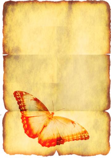 Keywords: parchment stationery butterfly paper old book page fold leaf template corners burned worn yellow