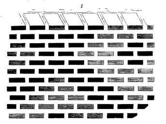 Keywords: Parement.brique.chateau.Palisse.Moulins.png Nous trouvons encore dans le Bourbonnais au château de la Palisse à Moulins même des constructions élevées en brique et mortier qui datent du XV<sup>e</sup> siècle et dont les parements présentent par l'alternance de briques rouges et noires des dessins variés tels que losanges zigzags chevrons etc Viollet-le-Duc Brick walls in France |