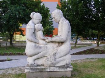 Keywords: Parents with child Statue Hrobakova street Bratislava.JPG Parents with child Statue Hrobákova street Petržalka Bratislava Own 2006-07-14 Kelovy not Statues in Bratislava Mother and child in art Statues of mothers with children