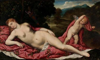 Keywords: Paris Bordone - Venere dormiente con Cupido - Ca d'oro - Venezia.jpg Artwork Creator Paris Bordone c 1540 Oil on canvas Institution Galleria Franchetti Ca' d'Oro Venice www atlantedellarteitaliana it PD-old-100 Sleeping Venus with Cupid Bordone Uploaded with UploadWizard |