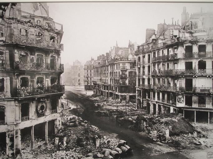 Keywords: Paris Commune rue de Rivoli.jpg en The rue de Rivoli after the fights and the fires of the Paris Commune Paris 4th arr In the background the hôtel de ville de Paris fr La rue de Rivoli vers l'hôtel de Ville au niveau de la rue Saint-Martin après les combats et les incendies de la Commune Paris 4 e arr own Tangopaso 1871-05 <gallery heights 200px widths 200px perrow 4 > File Combats dans la rue Rivoli jpg The barricade during the Paris Commune File Commune de Paris 24 mai incendies rue de Rivoli jpg Fights and fire 24 may 1871 File Paris_Commune_rue_de_Rivoli jpg Some days later File Rivoli_vs_St-Martin jpg In 2011 </gallery> 48 51 29 34 N 2 20 58 85 E region FR_heading SE PD-old Historical images of Rue de Rivoli Paris Destructions during the Paris Commune Paris Commune photographs |