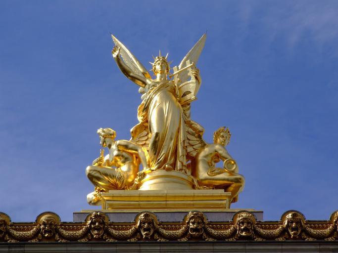 Keywords: paris france sculpture statue monument harmony famous landmark golden art artistic sky clouds building outside