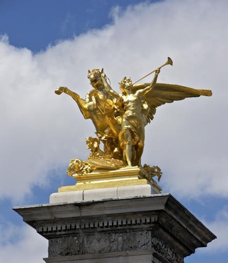 Keywords: paris france sky clouds statue monument golden beautiful outside city cities urban pedestal