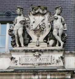 | Keywords: Paris Hôtel de Ville 24974.jpg Ecusson symbolisant les beaux-arts sur l'arrière de l'Hôtel de Ville de Paris Escutcheon representing the fine arts on the back of the town hall of Paris Own 3/10/07 Vassil Statues in the Hôtel de Ville de Paris Bird control spikes in Paris |