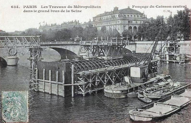 Keywords: Paris - Les travaux du Metropolitain - Foncage du caisson central.jpg Paris - Les travaux du Métropolitain - Fonçage du caisson central dans le grand bras de la Seine en 1906 ligne 4 PD-old Paris Metro Ligne 4 Postcards of the Paris Metro Metro construction in Paris Historical images of the Théâtre du Châtelet Historical images of Pont au Change |