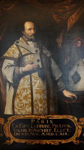 | Keywords: Paris Lodron 1638.jpg Artwork Erzbischof Paris Graf Lodron im Messgewand anonym Salzburg 1638 Öl auf Leinwand; Land Salzburg Inv Nr 1111130441; ausgestellt im Salzburg Museum 1638 Oil on canvas Institution Salzburg Museum own by WolfD59 2013-05 other versions <gallery>Paris Lodron 1638 Wappen jpg</gallery> 17th-century unidentified painters 1638 Paintings in the Salzburg Museum Paris Lodron 1630s paintings in Austria 1638 oil on canvas paintings Portrait 1638 portrait paintings Male 17th-century oil portraits of standing men at three-quarter length in ecclesiastical costumes 1638 17th-century portrait paintings in Austria 1638 Red drapery in portrait paintings 1638 |