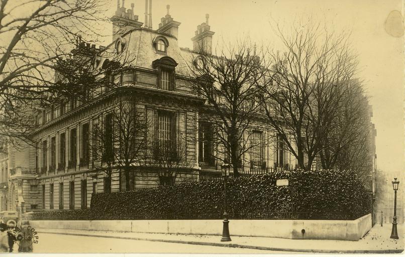 | Keywords: paris france white house whitehouse monochrome Local Accession Number: PC 150 Description: Wilson's residence during the Paris Peace Conference. Photographer: Unknown Source: Vaughn Size: 3x5 Medium: Print, Sepia Date: 1919? Local Accession Number: PC 150 Description: Wilson's residence during the Paris Peace Conference. Photographer: Unknown Source: Vaughn Size: 3x5 Medium: Print, Sepia Date: 1919? | ||||