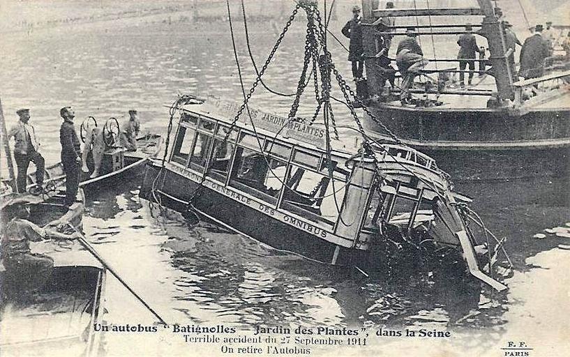 | Keywords: Paris - Un autobus Batignolles - Jardin des Plantes dans la Seine - Accident du 27 septembre 1911.jpg Paris - Un autobus Batignolles - Jardin des Plantes dans la Seine - Accident du 27 septembre 1911 Scan personnel own work ~ 1911 Inconnu unknown Historical buses in Paris PD-old |