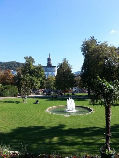 Keywords: park fountain meadow garden freiburg colombi sunshine blue sky relaxation local recreation
