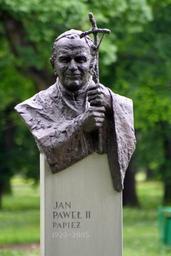 Keywords: Park Jordana w Krakowie - JPII.JPG 2006-05-28 own assumed Gosiarose~commonswiki Bronze statues of popes Ioannes Paulus II Busts in Henryk Jordan Park John Paul II monuments in Kraków