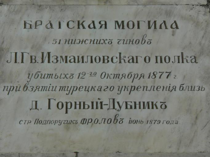 | Keywords: Park-Lavrov-brothers-mound-closeup.JPG Π Π°Π΄ΠΏΠΈΡ Π½Π° ΠΡ Π°ΡΡΠΊΠ°ΡΠ° ΠΌΠΎΠ³ΠΈΠ»Π° Π² ΠΠ°Ρ ΠΊ ΠΠ°Π²Ρ ΠΎΠ² ΠΊΡ Π°ΠΉ Ρ ΠΠΎΡ Π½ΠΈ ΠΡΠ±Π½ΠΈΠΊ ΠΡΠ»Π³Π°Ρ ΠΈΡ Inscription on The Brothers' Mound in Park Lavrov near village Gorni Dubnik Bulgaria Own 2007-09-08 Vassia Atanassova - Spiritia Park Lavrov 12 October 1877 Cyrillic inscriptions |