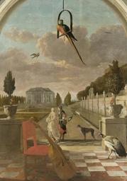 Keywords: Park met buitenhuis Rijksmuseum SK-A-4098.jpeg accession number SK-A-4098 Creator Jan Weenix credit line nl Park met buitenhuis Gezicht vanaf een terras met tegelvloer waarop een stoel staat met daartegenaan een cello Iets naar achteren een wandelend paar met een hond Aan weerszijden van het terras staan potten met sinaasappelboompjes Rechts een muur met beelden en een langwerpige vijver op de achtergrond een landhuis Boven het terras zit een papegaai op een stok verder ook andere vogels waaronder kraanvogels en een pauw Deel van een zesdelige kamerbeschildering waarvan een ander deel bewaard wordt in de collectie van Musée de la Chartreuse Douai Height cm 308 Width cm 220 exhibition history Institution Rijksmuseum Technique oil canvas object history Acquisition 1963 object type painting PD-US PD-old Data and photography rights All data and all images made available through the API are either in the public domain or are subject to a CC0 license https //www rijksmuseum nl/en/api/terms-and-conditions-of-use cc-zero place of creation http //www rijksmuseum nl/collectie/SK-A-4098 Park met buitenhuis Q17337955 Uploaded with GWToolset Park met buitenhuis Rijksmuseum SK-A-4098 http //www rijksmuseum nl/media/assets/SK-A-4098 Images uploaded by Fæ Images from the Rijksmuseum Paintings by Jan Weenix in the Rijksmuseum Amsterdam Jan Weenix |