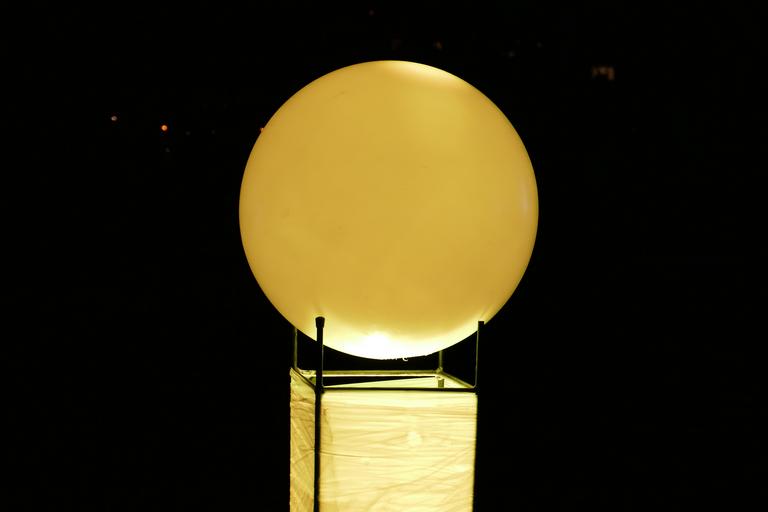 Keywords: park parking lights gruga eat sculpture gruga eat north rhine westphalia tourism evening night darkness dark light lighting light installation ball geometry