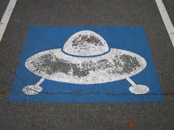 Keywords: parking space parking lot ufo pictogram sign fun asphalt urban paint