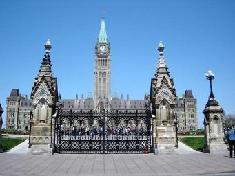 Keywords: Parliament Hill Front Entrance.jpg The entrance to Canada's w Parliament Hill in Ottawa Ontario Uploaded to en on July 24 2005 2005-05-15 en User Siqbal PD en English Wikipedia Siqbal Centre Block Queen's Gates