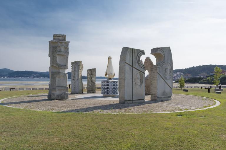 Keywords: Dar un paseo junto a la ría de Pontevedra, contemplar los monolitos con caras de premios nobel esculpidas, zona de juegos para niños.. esto lo encontramos en este lugar tan encantador. parque ocio pontevedra galicia poio