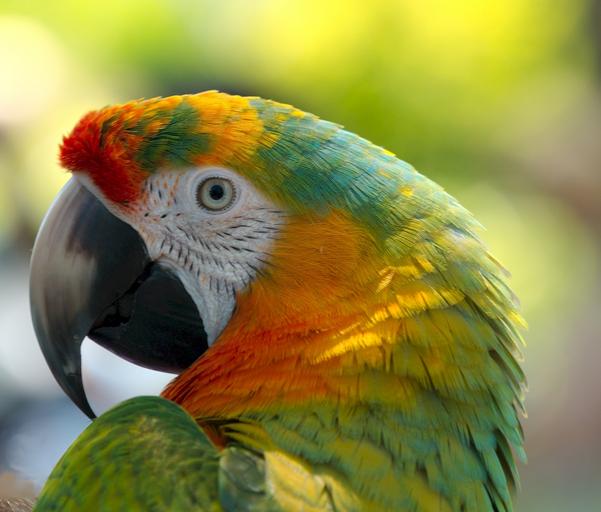 Keywords: parrot bird colorful feather perched tropical portrait head beak profile close up wildlife nature