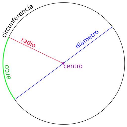 Keywords: Partes Circulo.svg Parts of a circle Partes de un círculo www metroflog com/ivanobich10 2006-04-14 own assumed Magister Mathematicae Radius and diameter Drawings by Magister Mathematicae