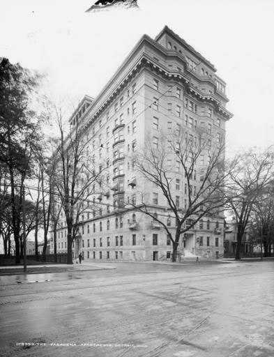 Keywords: Pasedena Apartments Detroitc1905.jpg 85002944 Pasedena Apartments ” at 2170 East Jefferson Avenue Detroit Michigan c 1905 Built in 1902 in the Renaissance Revival style An early example of upper-class multi-unit housing and is one of the earliest of these structures to be built with reinforced concrete brick and limestone facing Classical details on the upper floors including a cornice and false balconies seen here have since been removed On the National Register of Historic Places Library of Congress Prints and Photographs Division http //hdl loc gov/loc pnp/det 4a12449 Detroit Publishing Company ~ 1905 PD-US Pasadena Apartments Detroit Detroit in the 1900s Streets in Detroit Black and white photographs of Michigan Black and white photographs of buildings Black and white photographs PD-Detroit |