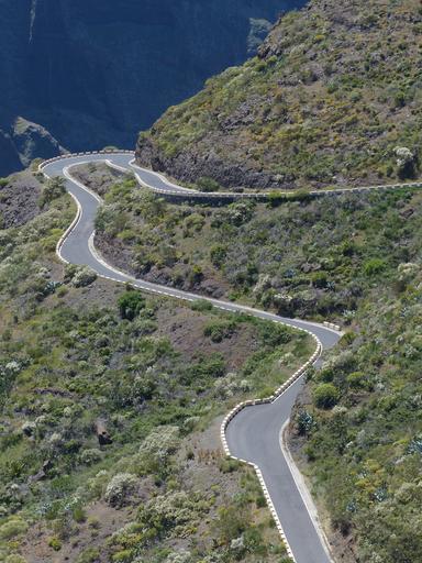 Keywords: pass road mountain road curves return eng steep paved road fog teno mountains mountain tenerife canary islands