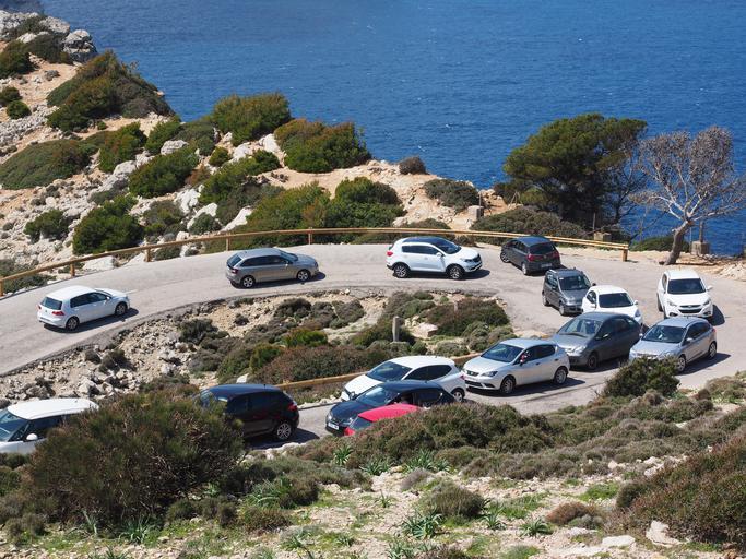 Keywords: pass road road autos traffic jam crowded mountains mallorca cap formentor serra de tramuntana needle curve