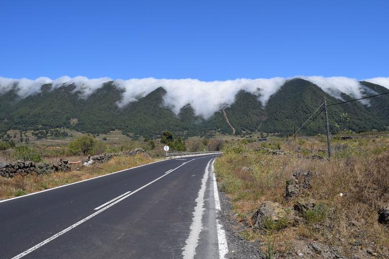 Keywords: passat clouds fog clouds mountains road asphalt cumbre island palma landscape