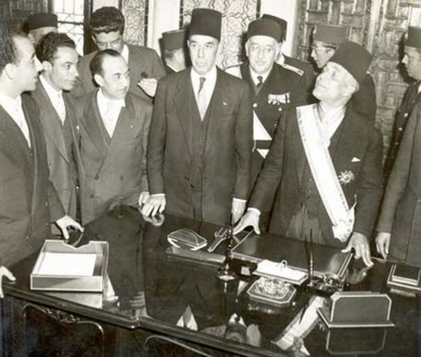 Keywords: Passation des pouvoirs, Dar El Bey.PNG en Passation des pouvoirs entre Habib Bourguiba et Tahar Ben Ammar 2014-02-13 13 54 33 Habib Bourguiba le bon grain et l'ivraie author PD-Tunisia Uploaded with UploadWizard Tahar Ben Ammar Habib Bourguiba in 1956 |