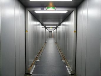 Keywords: passenger boarding bridge gangway access bridge increased to aircraft airport access climb leave passenger zustieg closed covered gang tunnel metal lighting neon lights