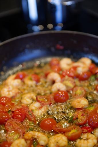 Keywords: pasta shrimp gambas tomatoes spaghetti mediterranean benefit from noodles eat food frisch spice healthy italian chili peppers chili sharp garlic
