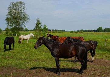 Keywords: pasture horses graze coupling meadow nature animals herbivores eat mammals ride idyllic mood grass livestock