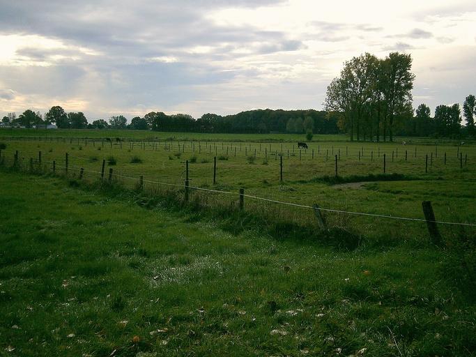 Keywords: pasture meadow cow cows animal landscape fence fences trees autumn sky blue clouds nature rest mammal relax