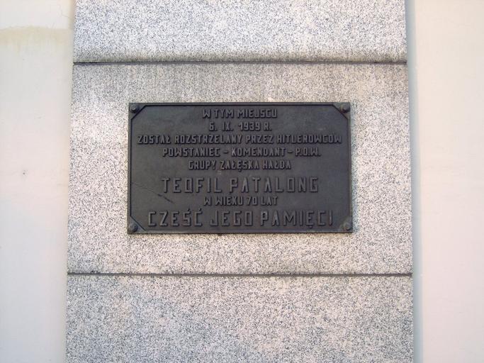 Keywords: Patalong Tablica Katowice.JPG pl Tablica ku czci T Patalonga w Katowicach-Załężu przy ul Bocheńskiego own Michał Bulsa Lahcim nitup 2009-10-14 Bocheńskiego Street in Katowice History of Katowice Plaques in Katowice Załęże Katowice