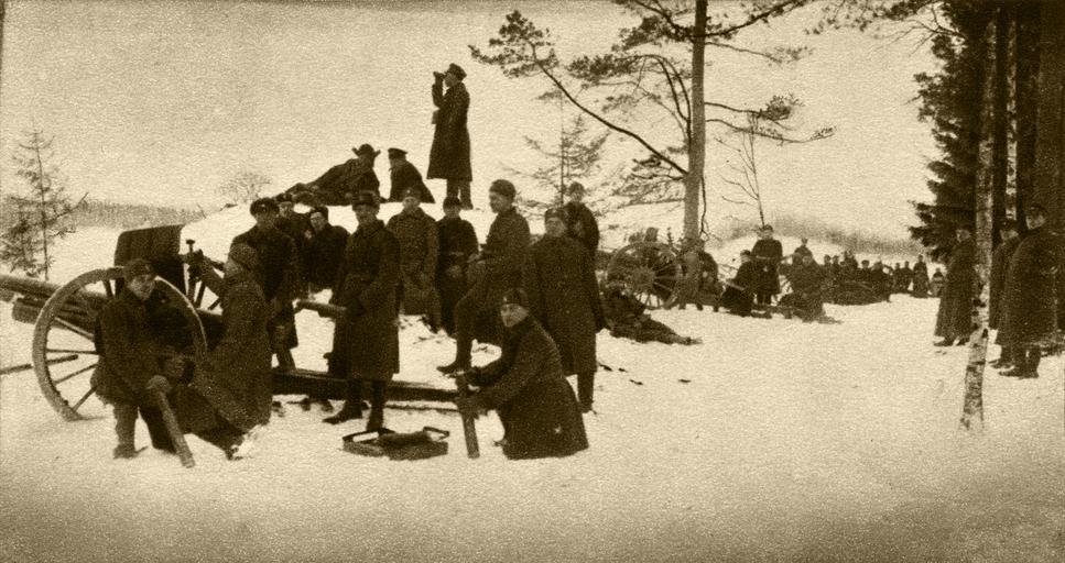 Keywords: Patarei nr 2 1919.jpg en Field battery No 2 in position near Narva in November and December 1919 Battery commander Captain Jaan Tõnisson observing with binoculars et Välipatarei nr 2 narva ees positsioonil novembris ja detsembris 1919 Kiikriga vaatlemas patarei ülem kapten Jaan Tõnisson Vabadussõja Ajaloo Komitee populaarteaduslik väljaanne 1939 Eesti Vabadussõda 1918 “1920 2 Tallinn Vabadussõja Ajaloo Komitee lk 353 Author 1919 Estonian War of Independence 76 2 mm divisional gun M1902 anonymous-EU ImageNote 1 1194 159 126 122 2967 1571 2 Patarei ülem kapten Jaan Tõnisson ImageNoteEnd 1 |