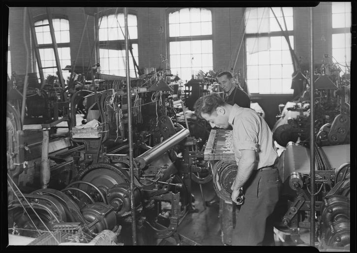 | Keywords: Paterson, New Jersey - Textiles. Madison Silk Co. Setting new warp onto loom. - NARA - 518611.tif Scope and content General notes 518611 Local identifier 69-RP-373 Federal Works Agency Work Projects Administration National Research Project ca 1941 - ca 1942 NARA-Author Hine Lewis Wickes 1874-1940 Photographer 1122914 <br /> Paterson Passaic New Jersey United States North and Central America inhabited place 4202736 40 917 -74 167 <br /> Still Picture Records Section Special Media Archives Services Division NWCS-S National Archives at College Park 8601 Adelphi Road College Park MD 20740-6001 1937-03-18 Record group Record Group 69 Records of the Work Projects Administration 1922 - 1944 Record group ARC 398 Lewis Hine Photographs for the National Research Project compiled 1936 - 1937 Series ARC 518291 File unit File unit ARC Variant control numbers NAIL Control Number NWDNS-69-RP-373 yes Other versions <gallery> File Paterson _New_Jersey_-_Textiles _Madison_Silk_Co _Setting_new_warp_onto_loom _-_NARA_-_518611 tif tif File Paterson _New_Jersey_-_Textiles _Madison_Silk_Co _Setting_new_warp_onto_loom _-_NARA_-_518611 jpg jpg </gallery> NARA-cooperation PD-USGov Paterson New Jersey-Textiles Textile industry in New Jersey Silk weaving NARA TIF images with categorized JPGs |