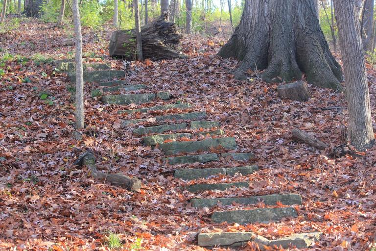 Keywords: path hiking bellevue state park stone steps leaves littered autumn outdoor