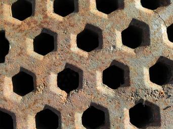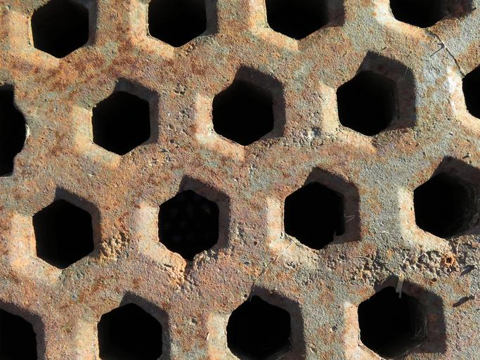 Keywords: pattern metal stainless form rusted brown hexagon hexagons irregular misshapen