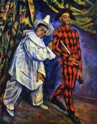 | Keywords: Paul Cézanne- Pierrot and Harlequin.JPG Artwork Creator Paul Cézanne 1898 Oil on canvas cm object history exhibition history credit line accession number place of creation Inconnue DEFAULTSORT Paul Cézanne Mardi gras Clowns in art Impressionist paintings of circus Pierrot Harlequin Paintings by Paul Cézanne PD-old-100 |