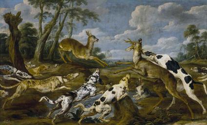 Keywords: Paul de Vos - Deer Hunt.jpg Artwork en Deer hunt de Rehjagd Oil canvas cm 212 347 Madrid Institution Museo del Prado https //www museodelprado es/coleccion/galeria-on-line/galeria-on-line/obra/caceria-de-corzos/ Mid Other date century 17 creator Paul de Vos Other versions PD-old-100 Paintings by Paul de Vos in the Prado Museum Baroque paintings of animals Paintings of deer hunting Paintings of roe deer 17th-century paintings of dogs |