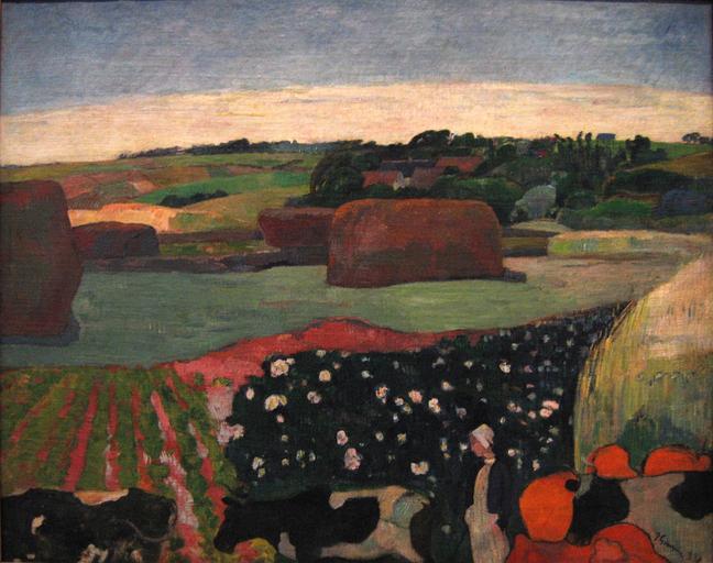 Keywords: Paul Gauguin - Haystacks in Brittany.jpg conj or fr Les meules Le champ de pommes de terre de Heuhaufen in der Bretagne Haystacks in Brittany oil on canvas cm 74 3 93 6 Museum National Gallery of Art Digital photo by User Postdlf 1890 Creator Paul Gauguin PD-old-100-1923 1972 9 11 Object history http //www nga gov/content/ngaweb/Collection/art-object-page 53129 html National Gallery of Art Washington D C online collection Gauguin catalogues 397 228 Other versions <gallery>File Gaugun - Heuhaufen in der Bretagne -1890 jpg</gallery> DEFAULTSORT Gauguin; Brittany 1890 Haystacks; NGA Paintings by Paul Gauguin in the National Gallery of Art Brittany by Paul Gauguin 1890s paintings by Paul Gauguin 1890 Haystacks; NGA Haystacks in art 1890 paintings from France Cattle in art Cattle in Bretagne 1890 in Bretagne Unidentified locations in Bretagne Photos by Postdlf |
