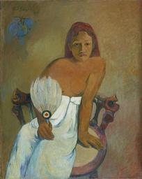 Keywords: Paul Gauguin - Jeune fille à l'éventail - Folkwang G53.jpg Artwork Creator Paul Gauguin Jeune fille à l'éventail Young Girl With Fan Donna col ventaglio 1902 Oil on canvas cm 91 9 72 9 Institution Museum Folkwang accession number G 53 cite book Childs Elizabeth C Greub Suzanne Gauguin and Polynesia Hirmer Verlag 6 October 2011 306 “321 Chapter 6 Remixing Paradise - Gauguin and the Marquesas Islands 978-3777442617 Fondation Beyeler Hatje Cantz 15 February 2015 148-9 Marquesas 1901-1903 978-3775739597 object history Erworben 1904 für das Museum Folkwang Hagen seit 1922 Essen exhibition history http //collection-online museum-folkwang de/eMuseumPlus service ExternalInterface module collection objectId 3009 viewType detailView Museum page Other versions <gallery>Paul Gauguin 074 jpg Much too saturated Louis Grelet - Tohotaua jpg Photo of Tohotaua Marquesan model Tohotaua photographed by L Grelet vs 'Young Girl with Fan' painting by Gauguin jpg Side by side comparision of photo with painting </gallery> PD-old-100-1923 DEFAULTSORT Gauguin; Polynesia 1902 Jeune fille a l'eventail; Museum Folkwang Polynesia by Paul Gauguin 1900s paintings by Paul Gauguin 1902 Jeune fille a l'eventail; Museum Folkwang Paintings in the Museum Folkwang 20th-century portrait paintings of unidentified women 1902 1902 oil on canvas paintings Portrait 1902 paintings in Germany 1902 portrait paintings from France F 20th-century oil portraits of girls at three-quarter length 1902 20th-century portrait paintings in Germany 1902 Female toplessness in paintings Paintings by Paul Gauguin in Germany Portrait paintings of women sitting in armchairs 1902 Portrait paintings of women holding feather fans 1902 Post-Impressionist paintings Uploaded with UploadWizard