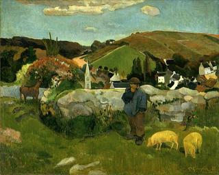 Keywords: Paul Gauguin - Paysage breton avec porcher.jpg Artwork Creator Paul Gauguin Swineherd Brittany Paysage breton avec porcher 1888 oil canvas cm 73 93 Los Angeles County Museum of Art object history credit line Gift of Lucille Ellis Simon and family in honor of the museum's twenty-fifth anniversary accession number LACM M 91 256 http //amica davidrumsey com/luna/servlet/detail/AMICO~1~1~74339~102977 Swineherd -Brittany sort INITIALSORT_CRN 2COCS 2CAMICOID 2CRIPSORT Amica library nul PD-old-100 1880s paintings by Paul Gauguin French paintings in the Los Angeles County Museum of Art 1888 paintings Post-Impressionist landscape paintings of France |