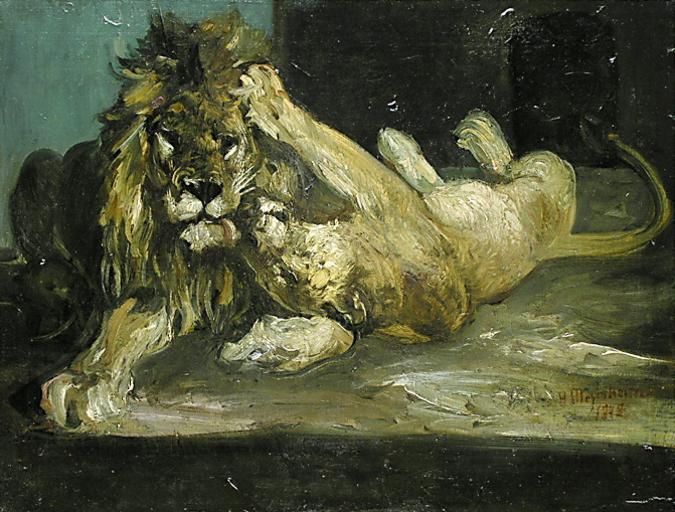 Keywords: Paul Meyerheim Das zärtliche Löwenpaar.jpg Das zärtliche Löwenpaar Oil canvas cm 28 46 Nachlassverzeichnis Paul Meyerheim Nr 20a http //www hampel-auctions com/ Credit line 1878 Creator Paul Meyerheim Other versions PD-old-auto 1915 Paintings of lions Paul Meyerheim Images from Hampel Auctions |