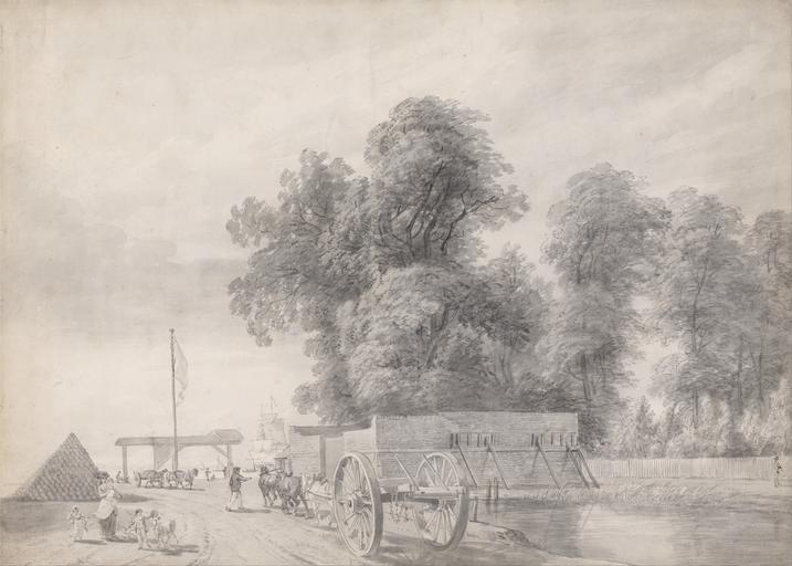 | Keywords: Paul Sandby - Woolwich Warren - Google Art Project.jpg Inscribed in graphite verso upper center T11130 ; in graphite verso lower left D3469 9 114/30 ; in graphite verso lower center Written by Col Gravatt Done with French chalk ground up with a little India ink ; in graphite verso lower center View of Woolrich Warren W Gravatt written by Paul Sandby R A ; in graphite verso lower right Paul Sandby R A A View in Woolwich Warren Sandby was appointed in Aug 1768 chief drawing master at the Royal Military Academy at Woolwich a position which he held until the end of 1796 when retired on a pension Collection of Col W Gravatt 1867 Collection of Wiliam Sandby Esq Exhibited Midland Counties Art Museum Nottingham Castle No 132 1884 Collection of G J A Peake great grandson of L Thomas Sandby Collection of Hubert Peake Inscription _Signed_and_Dated Not signed not dated Not on View Gray wash and pen and black ink on very thick cream moderately textured laid paper dogs women horses animals children river trees ship cart flag special url_id KQGgEJ5BGU64yQ PD-old-100-1923 1809 Drawings by Paul Sandby Google Art Project works by Paul Sandby Topographical views by Paul Sandby History of Woolwich Historical images of Royal Arsenal Woolwich Warren Lane Woolwich |