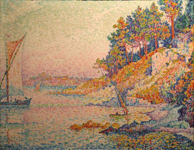 Keywords: Paul Signac-La calanque.jpg Artwork creator Paul Signac La calanque The calanque 1906 Oil on canvas Size cm 93 73 Royal Museums of Fine Arts of Belgium object history ProvenanceEvent 1937 bequest Mlle Anna Boch Brussels exhibition history credit line bottom left P Signac 1906 accession number http //193 190 214 119/fabritiusweb/FullBB csp WebAction ShowFullBB EncodedRequest F3 01 03 7E 20 B1 3D 0A 2B 60 08 3D 7C A6 5F5 Profile Default OpacLanguage fre NumberToRetrieve 10 StartValue 2 WebPageNr 1 SearchTerm1 SIGNACPAUL 20 2 4682 SearchT1 Index1 Artiste SearchMethod Find_1 ItemNr 2 5090 place of creation own by user Rvalette PD-old-auto 1935 <gallery> File Signac - La Calanque edit jpg </gallery> cc-by-sa-4 0 Uploaded with UploadWizard French paintings in the Royal Museums of Fine Arts of Belgium Paintings of France by Paul Signac Pointillistic paintings by Paul Signac |