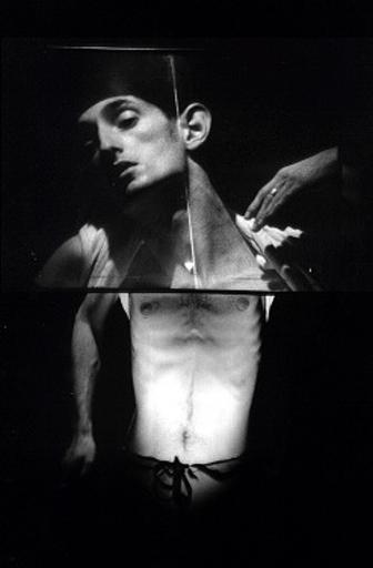 Keywords: Paulo Henrique.jpg en FROM NOW ON co-produced by Festival Danças na Cidade Lisbon This work established in Paulo Henrique's works a step into installation and the body as an installation site FROM NOW ON - the actual incisive meaning of the words/title a popular common/general social phrase from now on coding visions and meanings of transformation/change/separation/division/segmentation/analyses alongside with the phrase projected in the beginning of the performance installation There's no Seduction here No objects of Desire Finishing with the blood's performer projected after being taken live in the performance space and then becoming the visual enveloping of the body Link to full record about this work at DIGITAL PERFORMANCE ARCHIVE Own Photo Jorge Gonçalves From Now On 1996 Choreographers from Portugal Performance art |